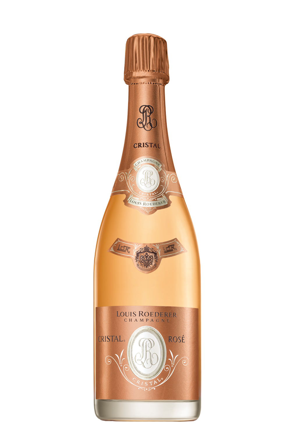 Il “Cristal Rosé“ proviene dai 7 migliori cru della Maison Louis Roederer, scelti tra la Montagne de Reims, la Valle de la Marne e la Cote des Blancs.