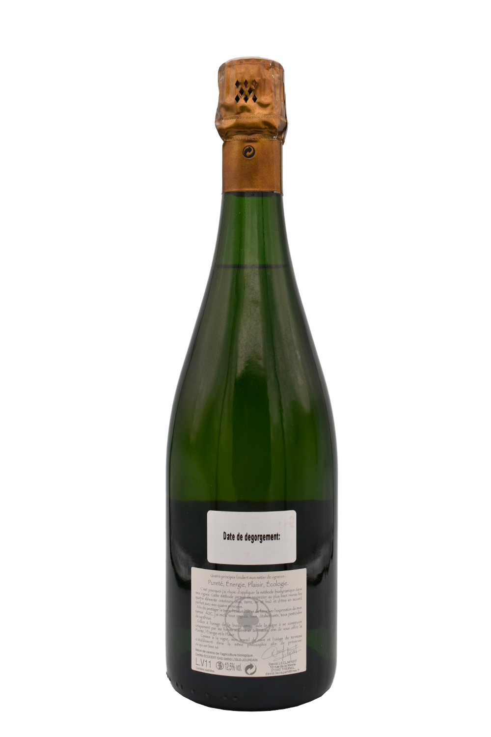 Il suo creatore, David Leclapart coltiva i suoi 3 ettari a Trepail, nelle Montagne de Reims, dove lavora con metodi biodinamici e completamente artigianali, assicurando l’equilibrio dell’ecosistema.