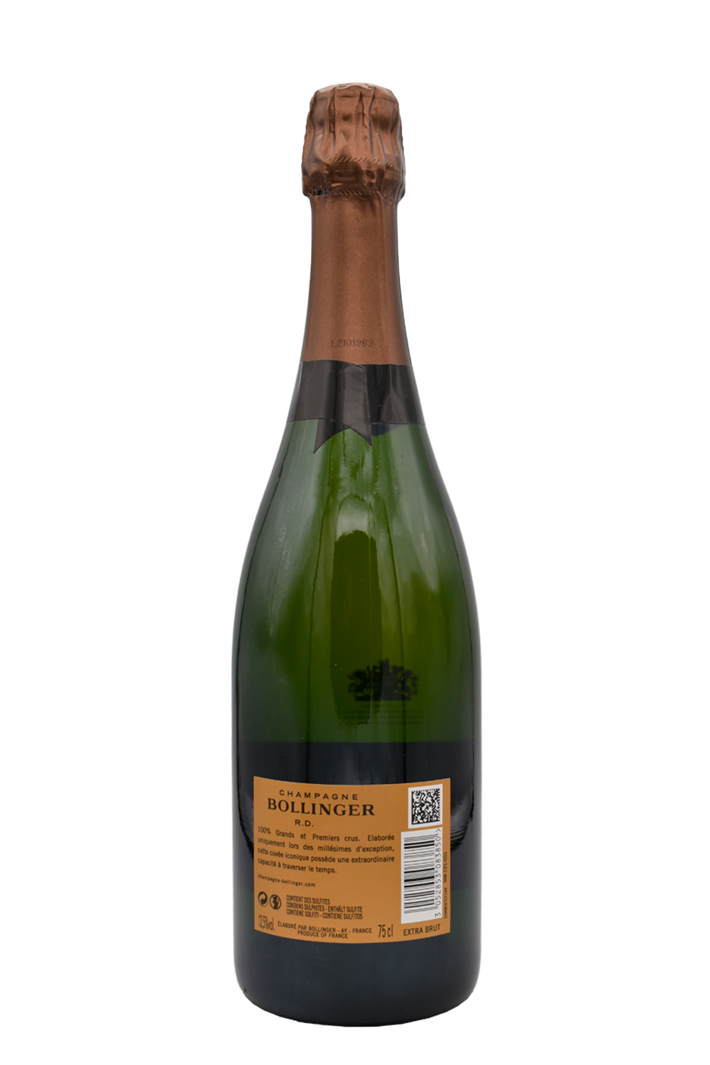 L’Extra-Brut R.D. di Bollinger viene prodotto dalla spremitura di diversi Grand Cru e Premier Cru, provenienti dalle località di Ay, Verzenay, Bouzy, Tauxieres, Mesnil-Sur-Oger e Cuis.