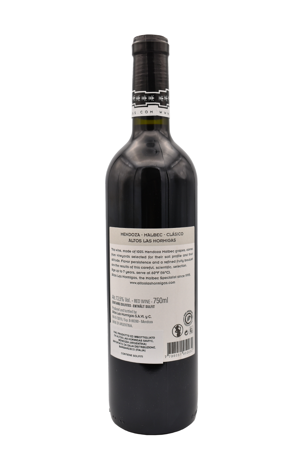 Il Malbec di Altos Las Hormigas è un rosso argentino che illustra in modo netto e deciso i classici sentori varietali del Malbec, attraverso un sorso gradevole, giovane, scorrevole e un colore rosso rubino acceso, con nuances violacee.