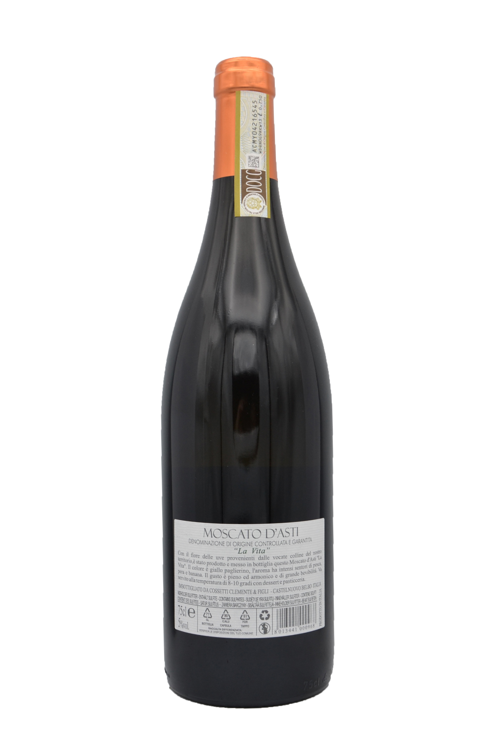 Availability: Esaurito“La Vita“ di Cossetti è un Moscato d’Asti lievemente frizzante, di colore giallo paglierino brillante con riflessi dorati.