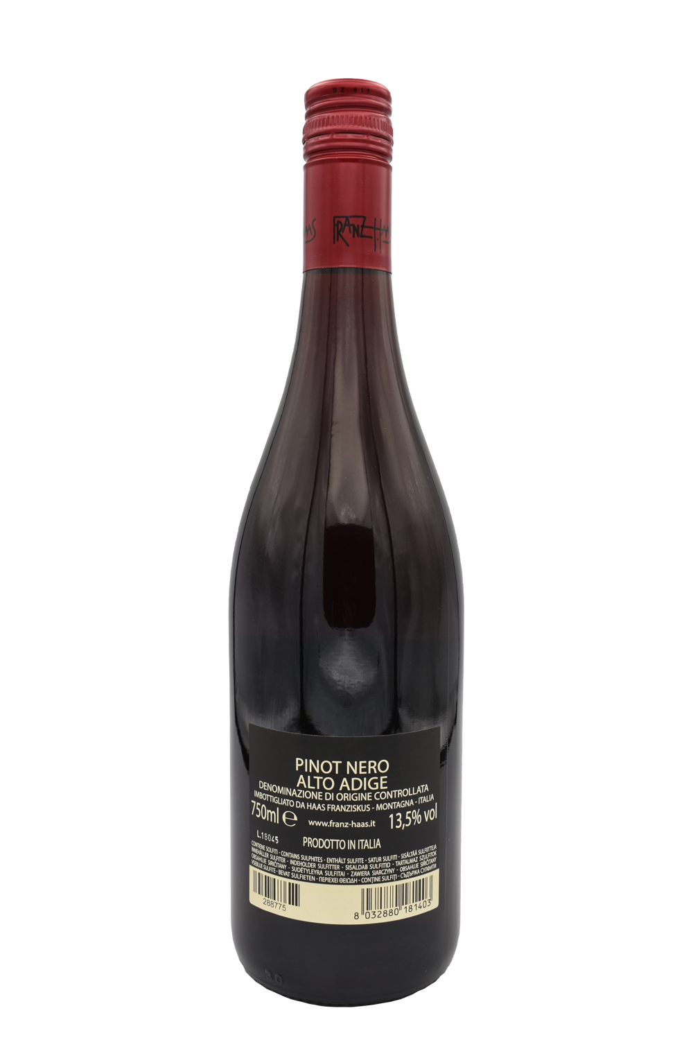 Availability: DisponibileIl Pinot nero per Franz Haas, si presenta a seconda dell’annata, con un mutevole gioco di colori che può variare dal rosso rubino chiaro a un rosso rubino intenso.