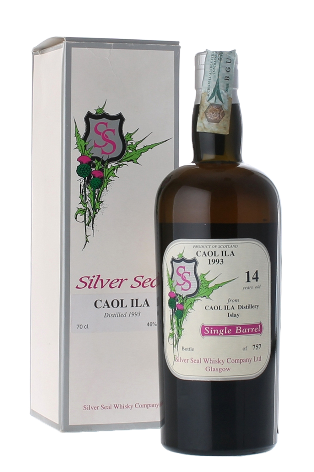 Lo “Scotch Islay Pure Malt Silver Seal 14 Years Old“ è un whisky prodotto dalla distilleria Caol Ila, quando era all’interno del gruppo United Distillers e imbottigliato dall’azienda imbottigliatrice indipendente “Silver Seal“, di proprietà di Ernesto Mainardi.